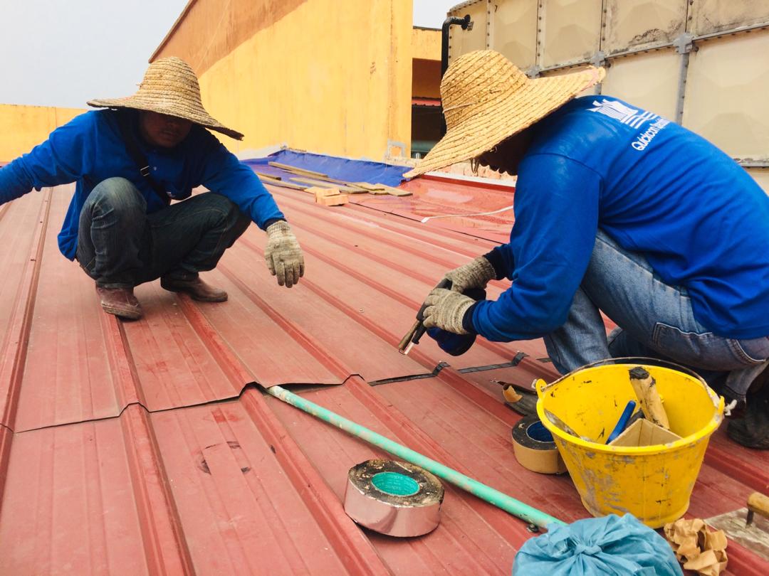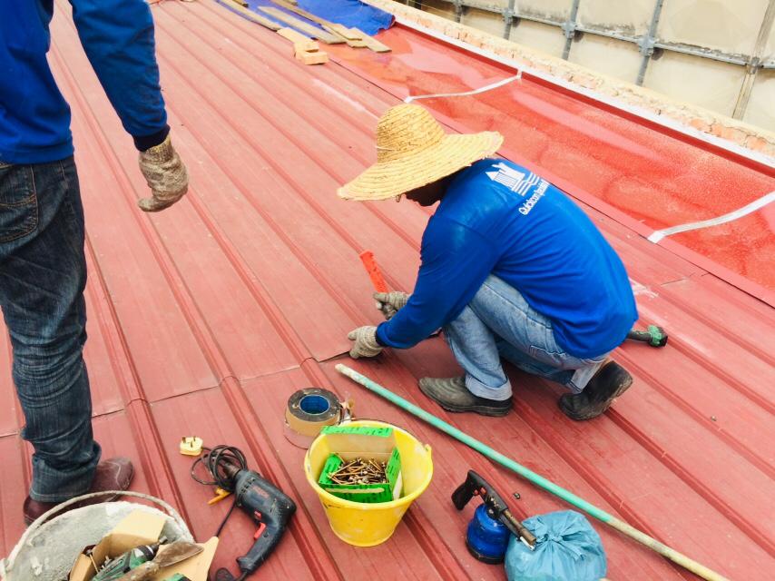 A roof is part of a building envelope. It is the covering on the uppermost part of a building or shelter which provides protection from animals and weather, notably rain or also heat, wind and sunlight. The word also denotes the framing or structure which supports that covering